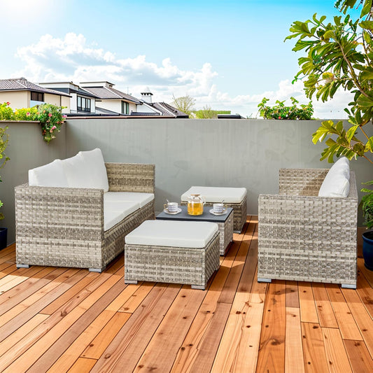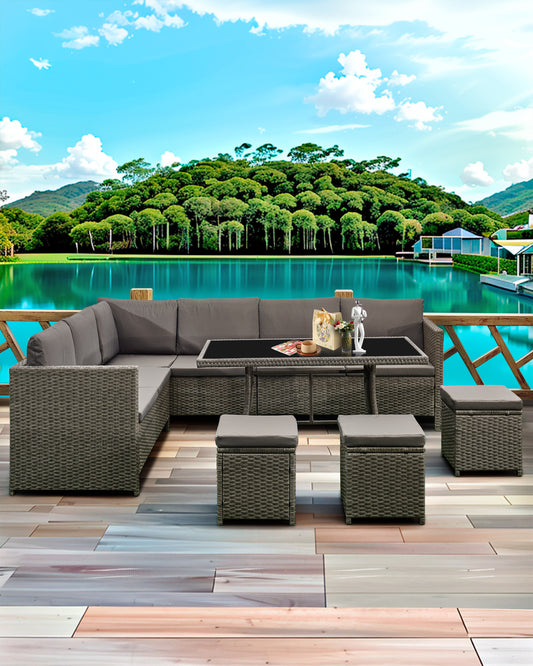 Acorn 7 Pieces Wicker Outdoor Sectional Sofa with High Table and Chairs-Grey