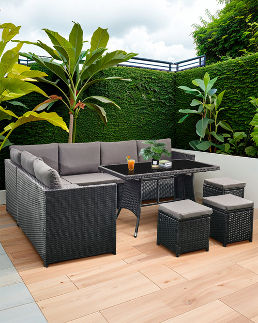 Acorn 7 Pieces Wicker Outdoor Sectional Sofa with High Table and Chairs-Black