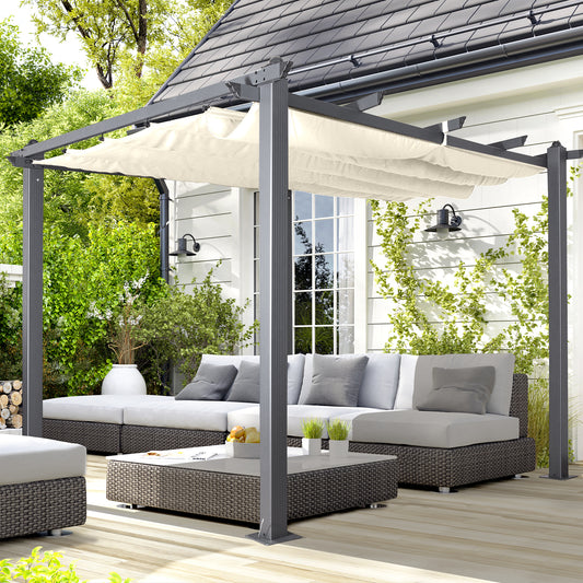 Acorn Aluminium 3m Square Pergola Gazebo in Grey and White