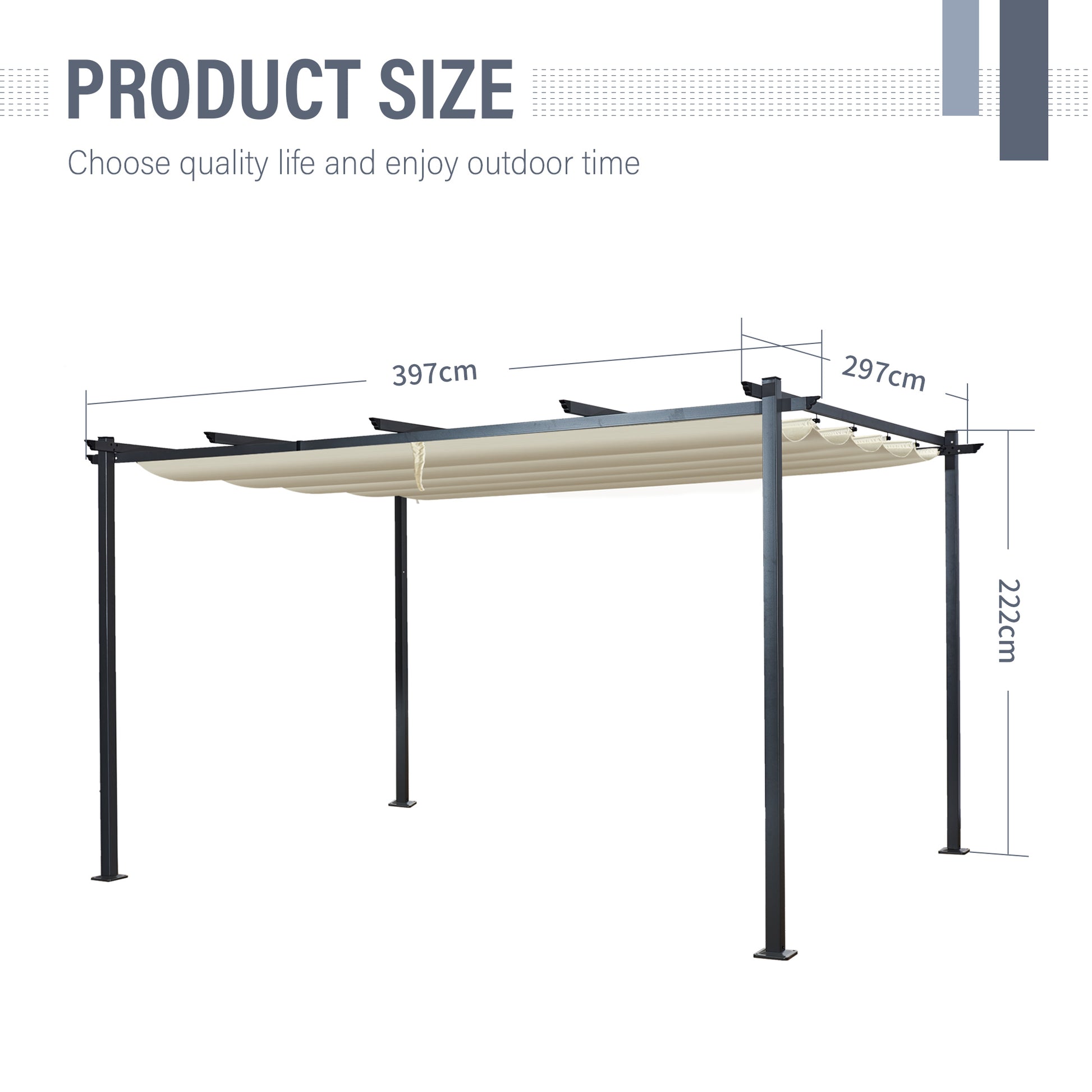 3x4m Metal Pergola with Retractable Roof, Gazebo with Sun Shade Canopy for Garden Patio Outdoor