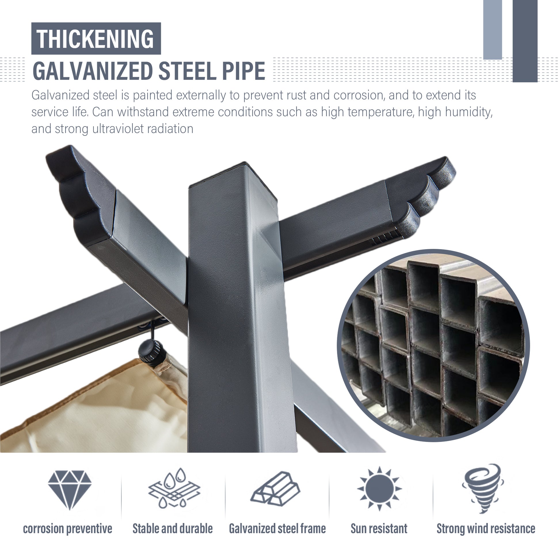 3x3m Metal Pergola with Retractable Roof, Gazebo with Sun Shade Canopy for Garden Patio Outdoor, Beige